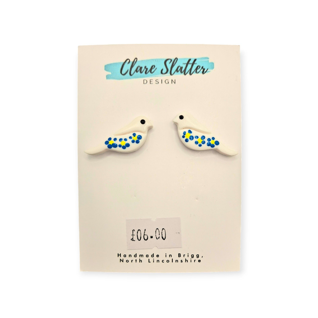 Hand painted polymer clay bird studs. Hypoallergenic available.