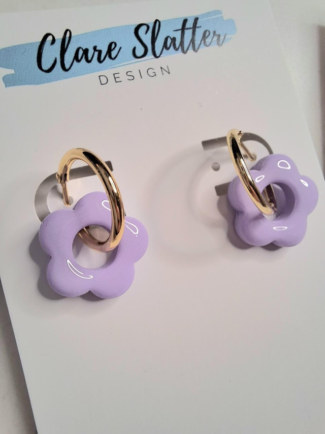 Mini Clay daisy hoop earrings